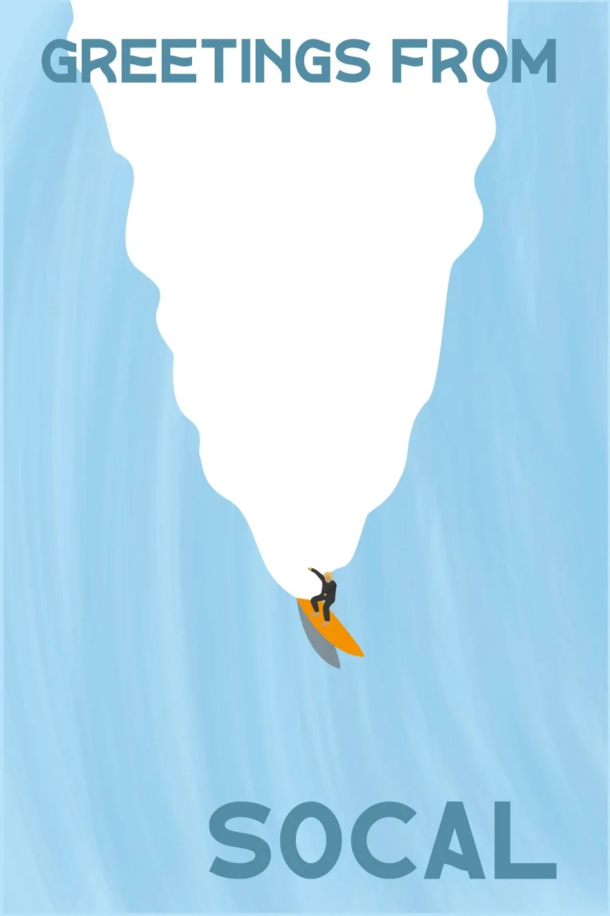 I decided to choose Southern California because it’s where I have made some of my happiest memories. My mom and I go running along the beach and watch the surfers catch waves – hence the surfer in the final draft.